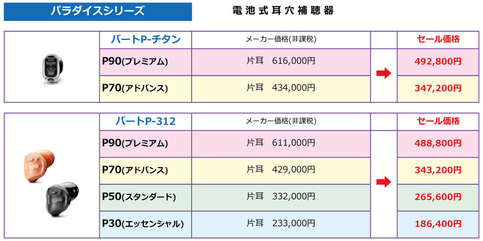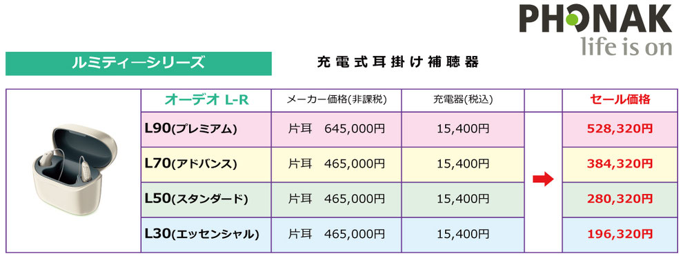 オリゾン補聴器安心価格 メーカ表示本体価格よりから全品20%割引